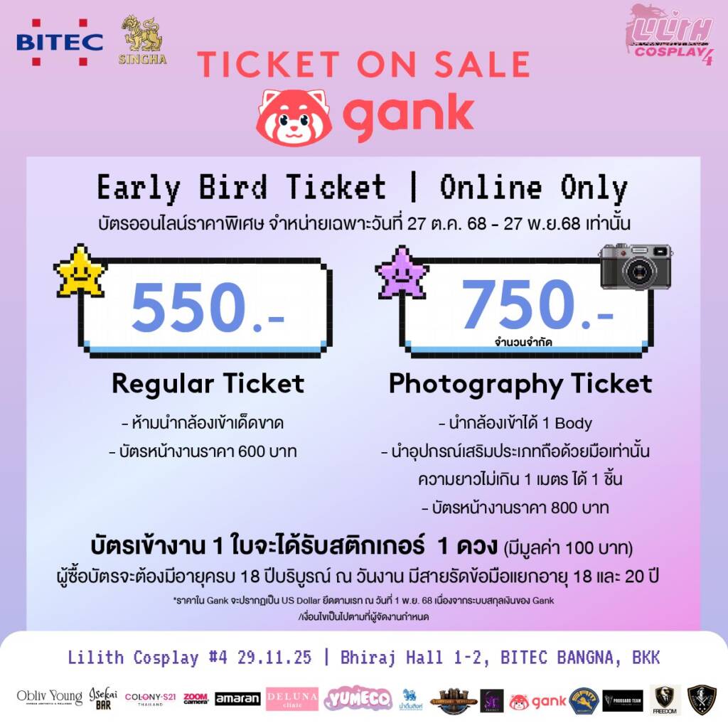 | Regular Ticket | 550バーツ(オンライン限定・早期販売) | 600バーツ |