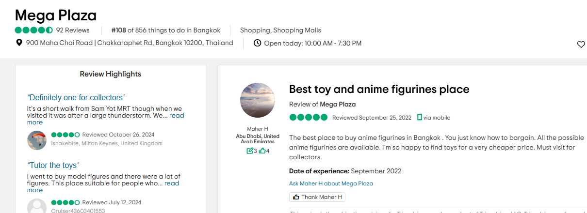Tripadvisor評價:https://www.tripadvisor.com/ShowUserReviews-g293916-d9861953-r861882289-Mega_Plaza-Bangkok.html