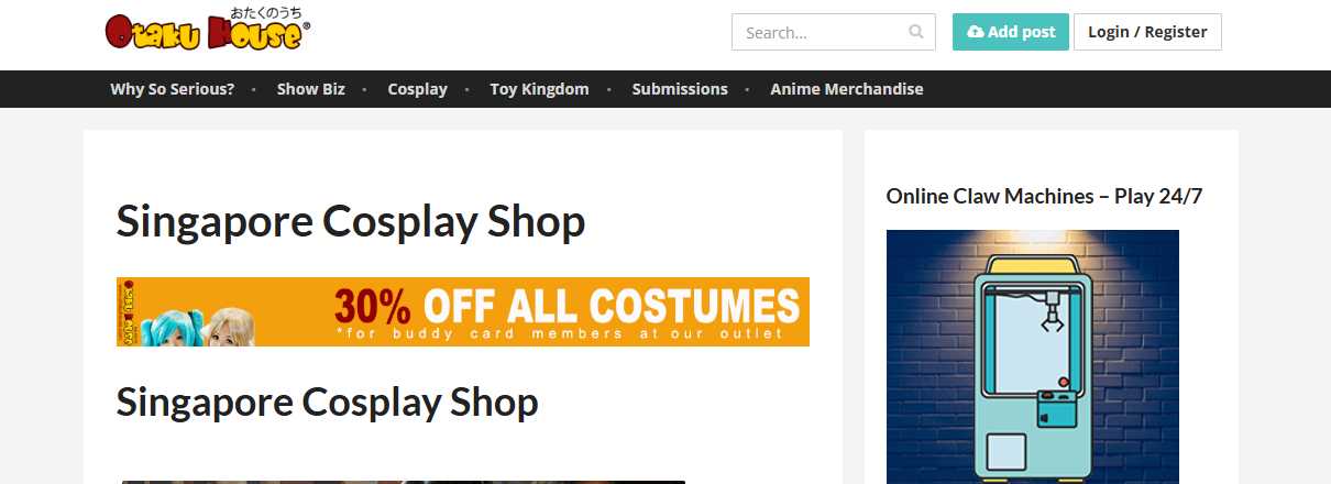 以上為大家介紹了新加坡可以購買、租借動漫cosplay服裝的推薦店家精選7間!