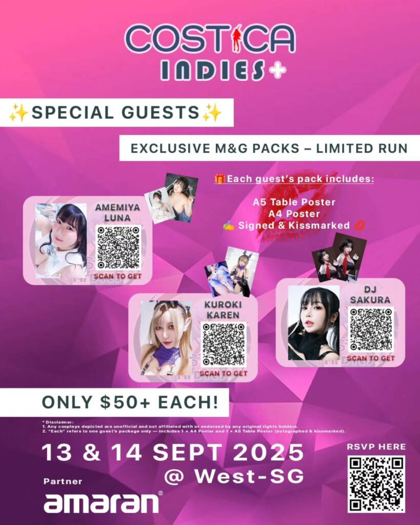 “Costica Indies strips it down to the essentials, focusing purely on ero-content creators and photography. Explore our concept photography zones, discover unique displays and merchandise produced by talented cosplayers.”