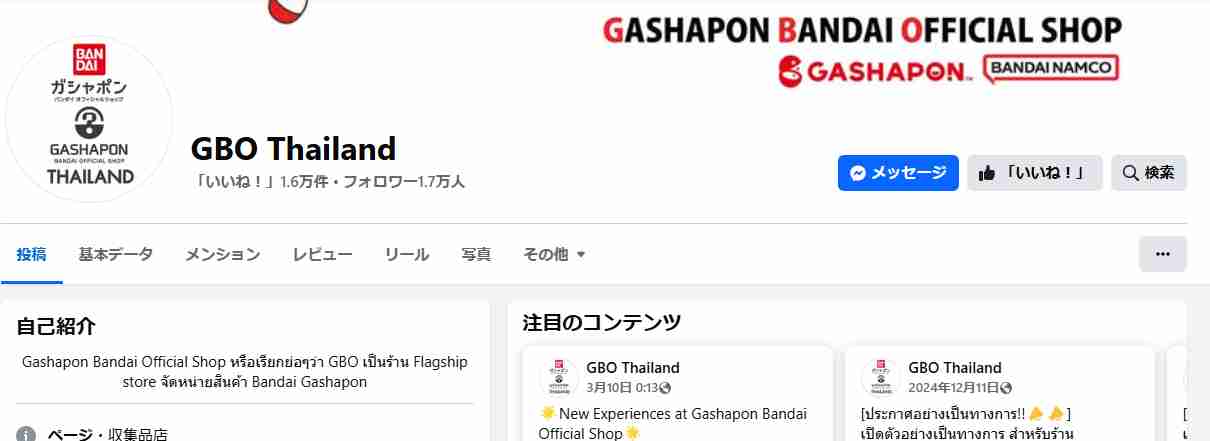官方網站/社群媒體:https://www.facebook.com/gashaponbandaithailand